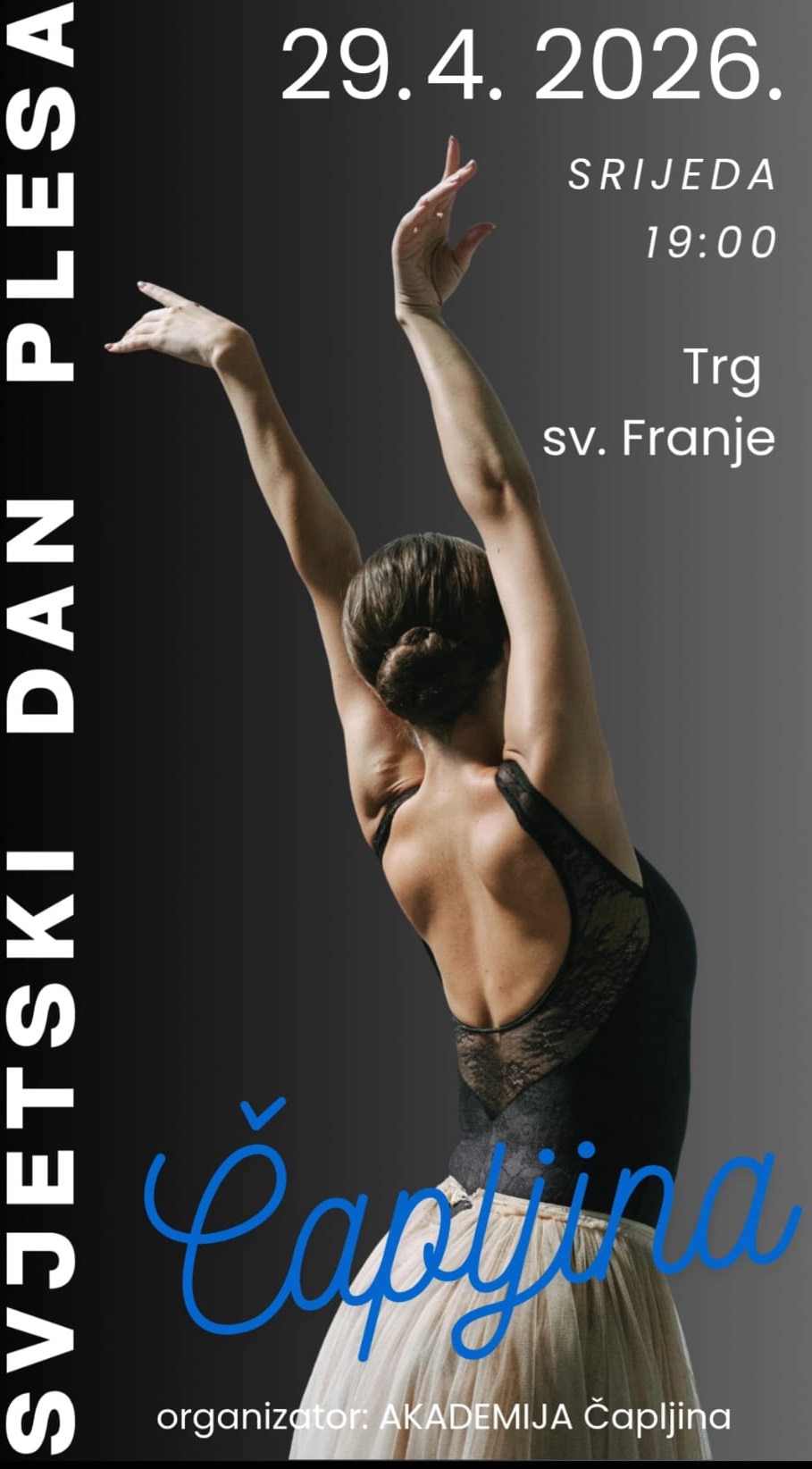 Ove godine, 29. travnja 2026. godine s početkom u 19:00 sati Svjetski dan plesa obilježit ćemo an Trgu svetog Franje u Čapljini.